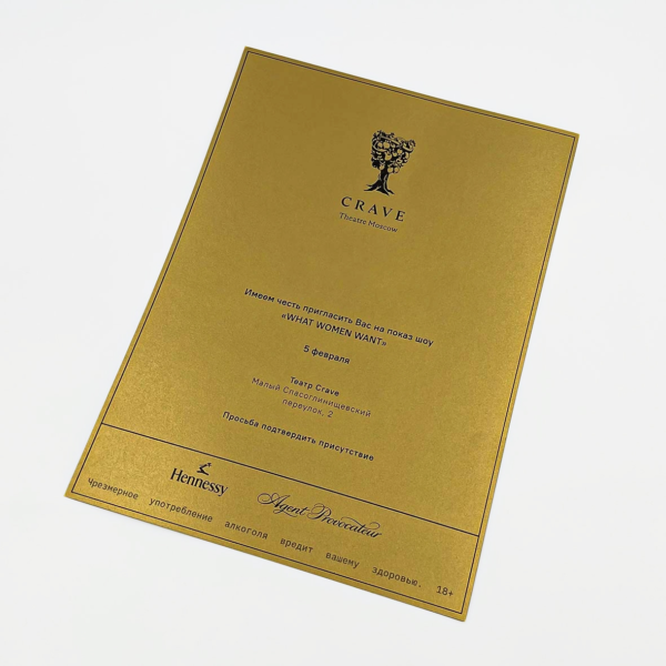 Экологически чистая гладкая двухсторонняя бумага с золотистым напылением и с мягким и сияющим отблеском. Отличается совместимостью с любым печатным оборудованием, лёгкостью при постпечатной обработке, превосходным качеством изделий. Применяется для визиток, открыток, пригласительных, сертификатов, ресторанного меню. Не рекомендуем печатать фотографии и плотные заливки, так как искажаются цвета.